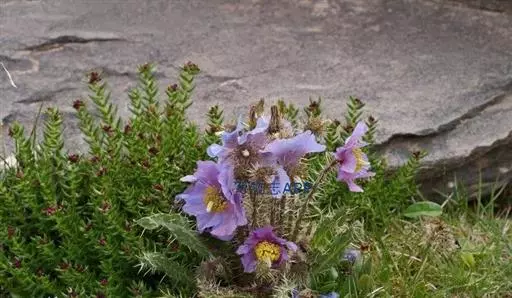 花单生于花葶上,半下垂,直径2.5-4厘米;花芽近球形,直径约1厘米或更大;萼片外面被刺;花瓣5-8,有时4,宽倒卵形,长1.2-2厘米,宽约1厘米,蓝紫色;花丝丝状,长约1厘米,色比花瓣深,花药长圆形,稍旋扭;子房圆锥状,被黄褐色平伸或斜展的刺,花柱长6-7毫米,柱头圆锥状。蒴果倒卵形或椭圆状长圆形,稀宽卵形,长1.2-2.5厘米,被锈色或黄褐色、平展或反曲的刺,刺基部增粗,通常3-5瓣自顶端开裂至全长的1/3-1/4。种子肾形,种皮具窗格状网纹。花果期6-9月。