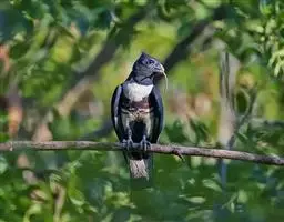 鹰雕,是隼形目鹰科鹰雕属大型猛禽,俗称熊鹰、赫氏角鹰。其上体暗褐色,头后冠羽常竖立起,…