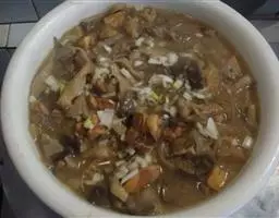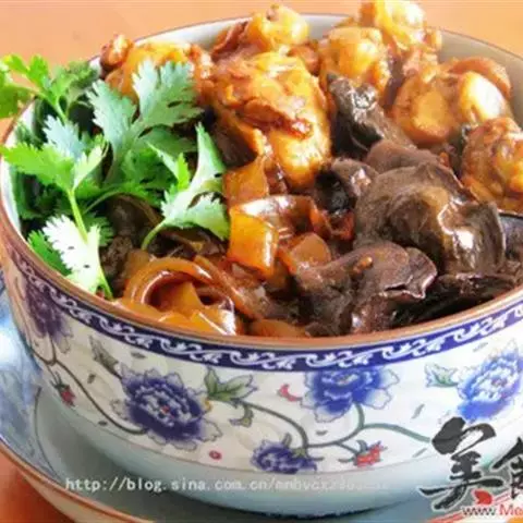 鸡肉炖蘑菇是一道以鸡肉、榛蘑、油、葱姜、花椒、老抽、盐、味精等为原材料制作的美食。营养搭配,…