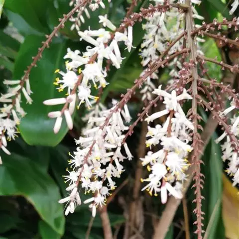 灌木或小乔木,茎直立,一般不分枝。根茎匍匐块状,根白色。叶剑状,或革质,或坚硬,密生于枝的先端,叶常具斑纹。花小,略带绿色、白色或黄色;圆锥花序。
