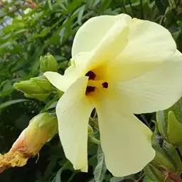 咖啡黄葵 Moench)亦称黄秋葵,是锦葵科一年生草本植物。茎圆柱形,疏生散刺。叶掌状,裂片阔至狭,…