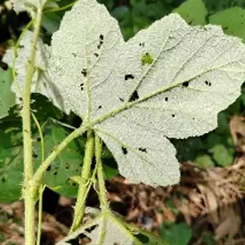 叶表面观:上表皮细胞类多角形,下表皮细胞略波状弯曲,垂周壁念珠状增厚。下表皮非腺毛及腺毛较上表皮为多,非腺毛单细胞,长166-900μm,基部直径18-38μm,壁厚6-12μm,表面有螺状纹理;腺毛头部2细胞,直径25-32μm;柄部2-3细胞。气孔不定式或不等式,副卫细胞4-5个。叶肉细胞有的含草酸钙簇晶。