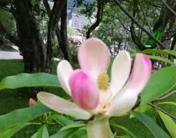 桂南木莲:常绿乔木,高可达20米,树皮灰色,光滑、芽、嫩枝有红褐色短毛。叶革质,…