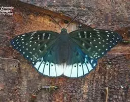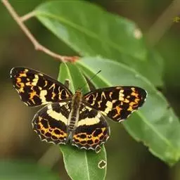 直纹蜘蛱蝶是蛱蝶科蜘蛱蝶属动物,后翅外缘呈角度,M1脉处突出,翅面有白色或黄色中横带,…
