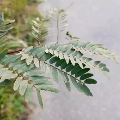 幼苗繁殖 荚果由绿变褐、种子变硬后即可采摘。荚果采摘晾干用棍棒敲打脱粒,风选,干藏。播种前催芽10天。将种子放入缸中,倒入80℃热水搅拌后浸种。第二天换水1次,第三天将种子捞出用清水冲洗,混以等体积的湿沙堆积在背风温暖处,用浸湿的麻袋或草片覆盖保温。七八天后种子约有1/3露白时即可播种。 选择地势较高、土壤肥沃的砂壤土做床。育苗地要整平整细,施足底肥,垄距为60厘米,沟深15厘米。在3月~4月采用开沟条播法播种,播幅约10厘米,每667平方米用种量4千克~5千克。播种后要保持土壤湿润,如土壤过干影响出苗,可在垄沟内灌水洇湿土壤,切忌浇水漫过垄面,以免土壤板结,影响出苗。 幼苗长出第二片真叶后及时间苗,拔掉病弱株和过密株,株距10厘米。间苗后要及时浇水。 大苗培育 播种苗当年以根系培养为主,要加强水肥管理,及时清除杂草。幼苗无须修剪,以促进形成发达根系,为养根阶段打好基础。幼苗10厘米高时,可结合浇水施1次人粪尿,此后每月追肥2次,化肥与人粪尿可间隔施用。要注意及时灌水,雨季排涝,立秋后停止施肥、浇水。 播种苗当年上冻前起苗分级假植越冬。主干通直、粗壮、高达2米以上的幼苗,带干假植;其他幼苗自根颈以上5厘米处截干,将苗根埋藏越冬。翌年4月上旬定植进行养干,定植株行距40厘米×60厘米。 育苗地施足底肥,翌年4月上旬将假植苗取出,剪去坏根、病根,将主根剪去5厘米根尖后定植,及时浇定植水。对带干定植苗采用斩梢接干法进行接干培养。萌芽前,在苗干上部选饱满的侧芽枝上进行中短截,促进侧芽发育成枝,向上生长,以延长主干。此期要加强肥水管理,及时去除其余侧枝,促进主干生长。当年即可达到园林用苗的干高要求(一般干高要求为2.5米~3.5米)。 对截干定植苗,待萌蘖条长到15厘米以上时留1个长势旺盛的枝条作为主干培育,其余枝条要及时去除。加强水肥管理,在水肥充足的情况下,截干当年新主干即可接近或达到干高要求,且干形顺直。 第三年春季对达到干高要求的苗木进行摘心,促发侧枝形成树冠,使枝叶量增加,以利于树木生长和干径加粗。如果植株过密时,可于翌年春季开始萌芽前进行抽稀移栽,培育大规模园林用苗。
