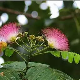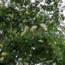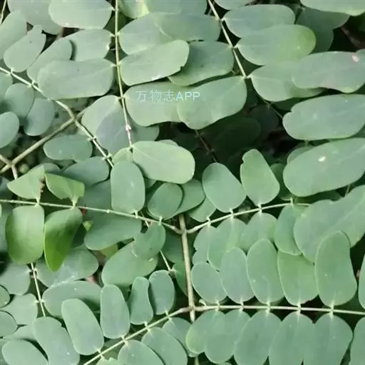 二回羽状复叶,羽片2-6对;总叶柄近基部有压扁的腺体1枚;小叶4-10对,长圆形或倒卵形,长12-25毫米,宽7-15毫米,顶端极钝或有时微缺,或具硬细尖,基部偏斜,上面无毛,下面疏被微柔毛;中脉居中。头状花序有花6-12朵,再排成顶生或腋生的圆锥花序;总花梗柔弱,疏被短柔毛,长5-10毫米;花无梗;花萼长不及1毫米,与花冠同被微柔毛;花冠白色,管长约4毫米,裂片长2毫米;花丝长1厘米。荚果带状,长10-20厘米,宽3-4厘米,扁平,无毛;种子7-11颗,长圆形,褐色。花期4-7月;果期8-11月。