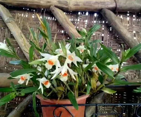 通常选用四壁多孔的塑料或陶瓷花盆,用碳根、泥炭藓、树皮块、木炭块等作盆栽材料。根据兰苗的大小,选择不同规格的花盆,但不宜用大盆栽小苗口上述栽好材料在使用前必需在清水中浸泡1天以上备用。盆底要多垫大瓦片或碎砖块,深度至盆底约1/3处,然后将兰苗放于盆中央,并在一旁插一细竹竿以固定兰苗,再填入其他栽培材料,注意根与根之间用材料隔开。