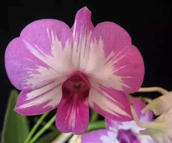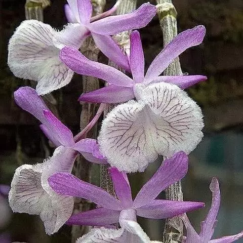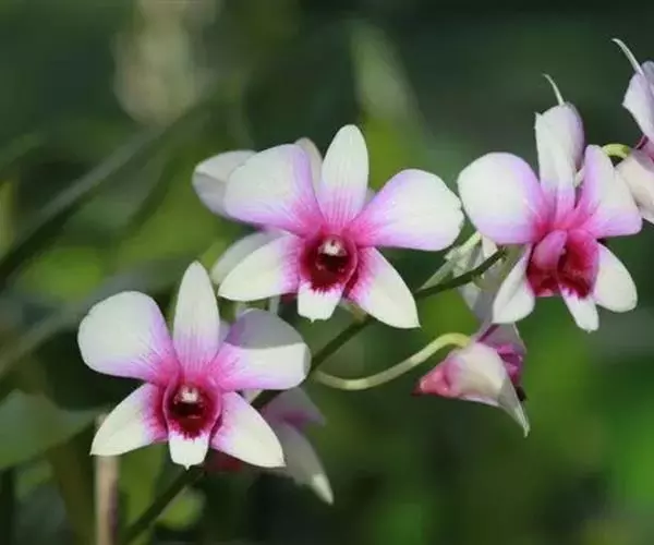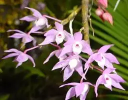 玫瑰石斛是兰科石斛属的多年生附生草本植物。茎斜下或下垂,青绿色,圆柱形,…