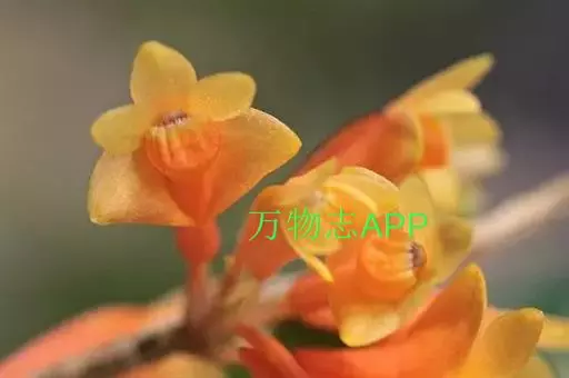 独角石斛,Dendrobium unicum,兰科石斛属植物。花瓣橙黄色,唇瓣反转似犀牛角,…