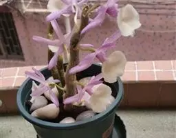 通常选用四壁多孔的塑料或陶瓷花盆,用碳根、泥炭藓、树皮块、木炭块等作盆栽材料。根据兰苗的大小,选择不同规格的花盆,但不宜用大盆栽小苗口上述栽好材料在使用前必需在清水中浸泡1天以上备用。盆底要多垫大瓦片或碎砖块,深度至盆底约1/3处,然后将兰苗放于盆中央,并在一旁插一细竹竿以固定兰苗,再填入其他栽培材料,注意根与根之间用材料隔开。