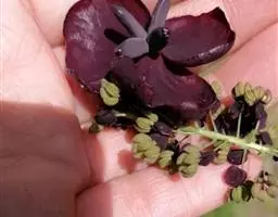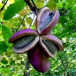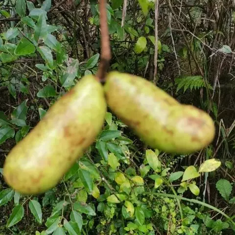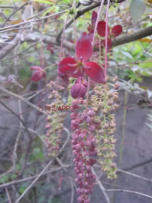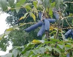 果长圆形,长6-8厘米,直径2-4厘米,直或稍弯,成熟时灰白略带淡紫色;种子极多数,扁卵形,长5-7毫米,宽4-5毫米,种皮红褐色或黑褐色,稍有光泽。花期4-5月,果期7-8月。