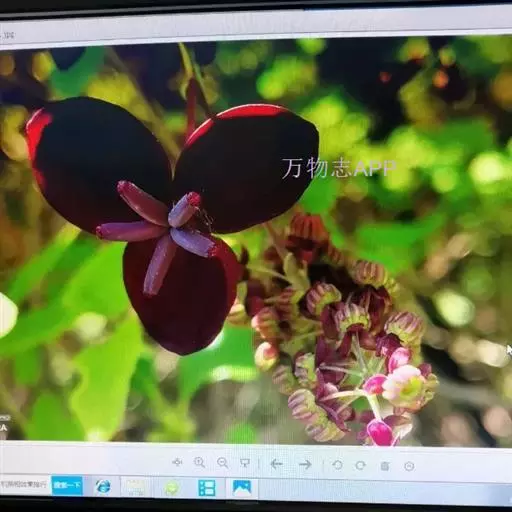 长萼三叶木通(亚种)落叶或半落叶缠绕藤本。茎皮紫褐色,具多数小皮孔。叶具小叶3片,极稀为4-5片;叶柄长5-8.5厘米;小叶革质,卵形或卵状长圆形,长3厘米-6厘米,宽2厘米-3.5厘米,先端钝,基部楔形,边近全缘;基出脉3。花多朵组成腋生、长6厘米-8厘米的总状花序,每花序有雄花7朵-10朵,雌花2朵。雄花:花梗长约5毫米;萼片3或4片,长圆形,长9毫米-12毫米;雄蕊长2.5毫米-3.5毫米。雌花:花梗长1.5厘米-3厘米;萼片紫黑色,近线形或狭长圆形,长2.2厘米-2.7厘米;心皮4-6,圆柱形,长4毫米-6毫米。果未见。花期4月。