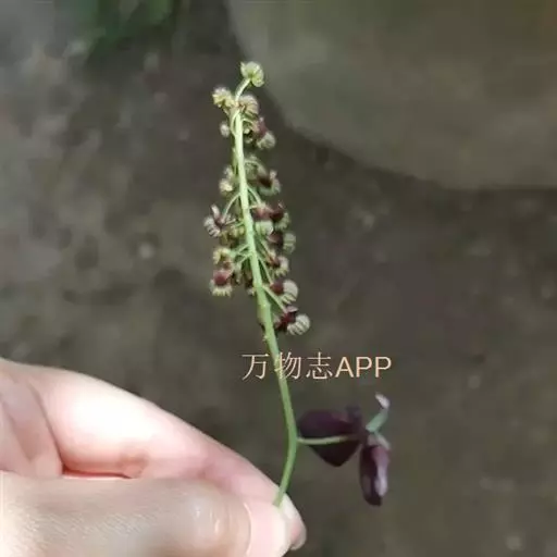 总状花序自短枝上簇生叶中抽出,下部有1-2朵雌花,以上约有15-30朵雄花,长6-16厘米;总花梗纤细,长约5厘米。雄花:花梗丝状,长2-5毫米;萼片3,淡紫色,阔椭圆形或椭圆形,长2.5-3毫米;雄蕊6,离生,排列为杯状,花丝极短,药室在开花时内弯;退化心皮3,长圆状锥形。雌花:花梗稍较雄花的粗,长1.5-3厘米;萼片3,紫褐色,近圆形,长约10-12毫米,宽约10毫米,先端圆而略凹入,开花时广展反折;退化雄蕊6枚或更多,小,长圆形,无花丝;心皮3-9枚,离生,圆柱形,直,长(3)4-6毫米,柱头头状,具乳凸,橙黄色。