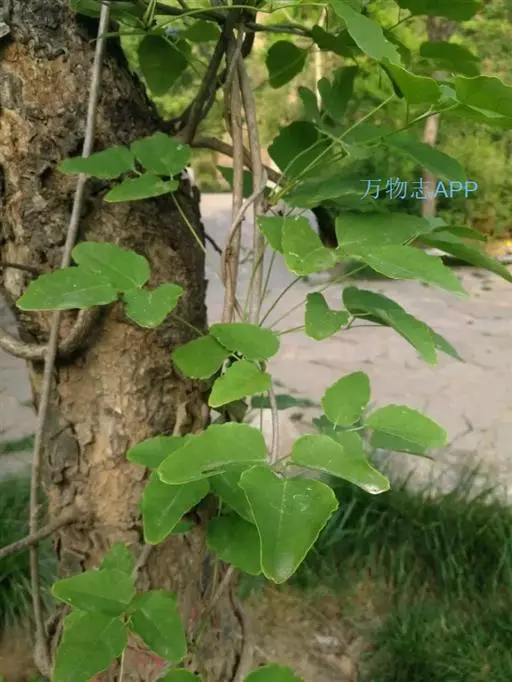 落叶木质藤本。茎皮灰褐色,有稀疏的皮孔及小疣点。