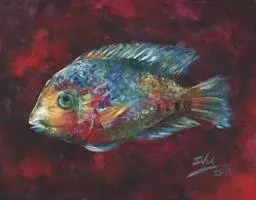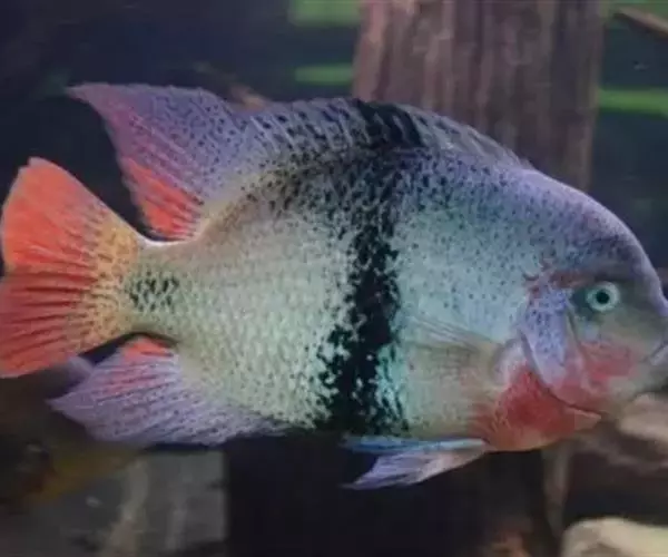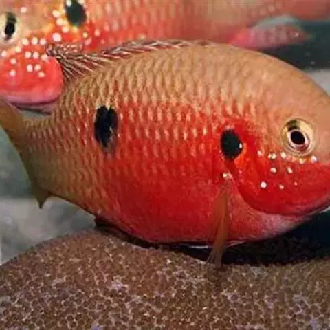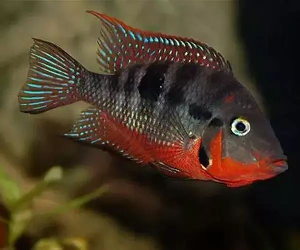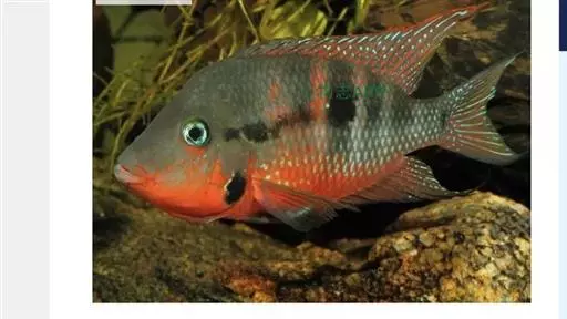 看到它在面颊下缘鲜红的色泽,就可以明白如此称呼是最恰当不过的了。属于大型的南美慈鲷,但它只是静静地停留在某一角落,守卫着属于自己的地盘,在繁殖季节到来时显得异常的暴躁凶猛,常打得别的鱼遍体鳞伤甚至致死,但由于它的遗传因子极强而固定,所以成为从事育种玩家收藏的鱼种。