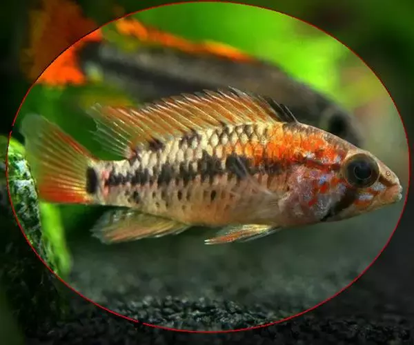 南美中小型慈鲷,体长只有10公分,脾气非常暴躁,在生气时会鼓胀其鳃膜恐吓敌人。有强烈的领域性,常不时追赶进入其领域的鱼只。因为成熟时从鳃部至前胸有非常鲜艳的红色,故称为〔火口〕。会有吞食泥沙过滤其中饵料的习性,因此在初期进口时,其英文名为〔食土鲷〕,在台历史悠久,但在市场上是正被淘汰中的鱼种。 火口鱼