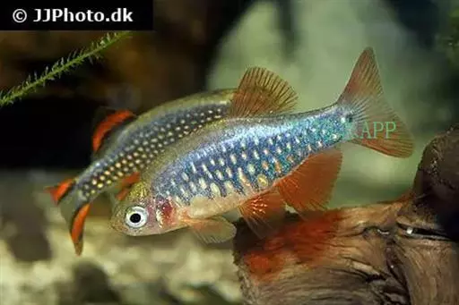 六月龄性成熟。火口鱼在产卵繁殖前出现婚艳色,选体长10厘米以上的作亲鱼。水箱内放一个侧倒的小花盆作繁殖窝,水温保持在20度左右,水质略偏碱,硬度8度左右。要求环境安静。产卵完毕即捞出亲鱼。一尾雌鱼可产卵200余粒。受精卵经4天孵出仔鱼。