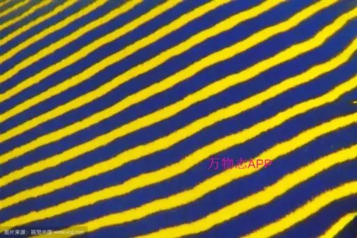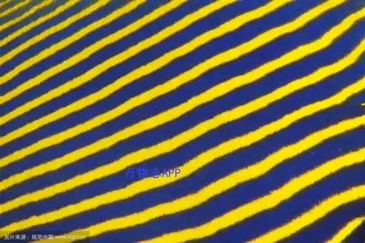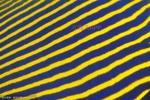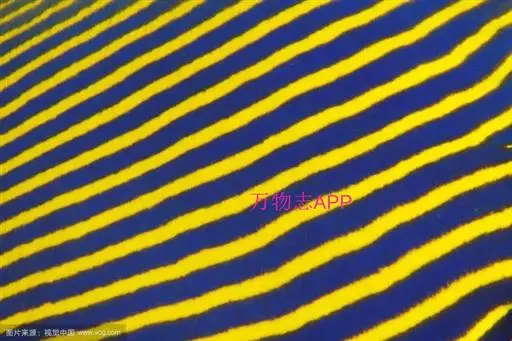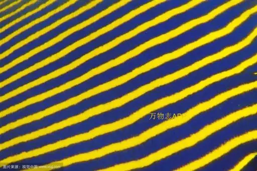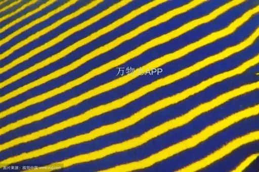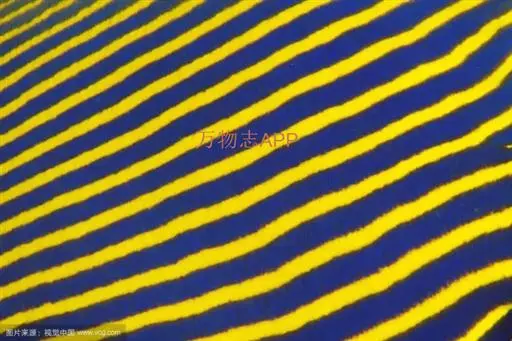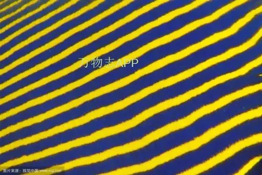 幼鱼时,体一致为橘黄色,体侧具4~6条带黑边之白色至淡青色之横带,背鳍末端具一黑色假眼;成鱼则体呈黄色,横带增至8~10条且延伸至背鳍,背鳍软条部暗蓝色,假眼已消失。由背鳍前方至眼后亦有黑边之淡青色带;臀鳍黄褐色,具数条青色弧形线条;尾鳍黄色。