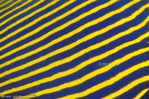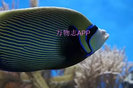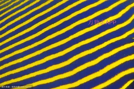 • 额斑刺蝶鱼,体卵圆形侧扁,有鲜明蓝色轮廓和数条鲜蓝竖纹,全身密布网格状具蓝色边缘的珠状黄点,深蓝色…