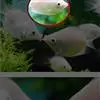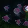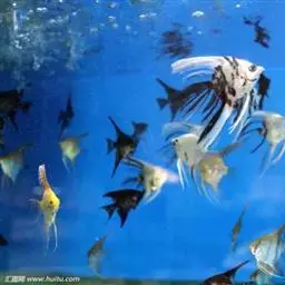 甲尻鱼与其他鱼类共生。此鱼属大Angelfish,右图第5行