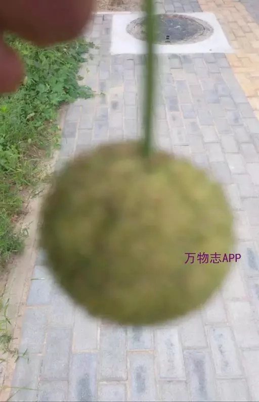 头状果序圆球形,单生稀为2个,直径约3cm,宿存花柱极短;小坚果先端钝,基部的绒毛长为坚果之半,不突出头状果序外。花期5月,果期9-10月。