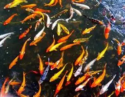 在庭院、宾馆直接以观赏为养殖目的的可建水泥池饲养,池子不宜过深,以0.6~0.8米为宜,便于观赏。这类饲养是单养,密度可稍大些,每平方米可放养3~5尾锦鲤。大面积水泥池养殖,放养密度以每平方米水面1~3尾为宜,可适当搭配草、鲢、鳙等进行混养。投喂采取“四定”,一般每天投喂分早晚两次,早上在日出后,下午在日落前,日投喂量为鱼体重的2%~10%,以20~30分钟吃完为好,投喂饵料种类应 龙凤锦鲤 多种多样。同时要求饵料无污染、无腐败变质。