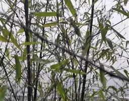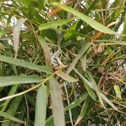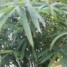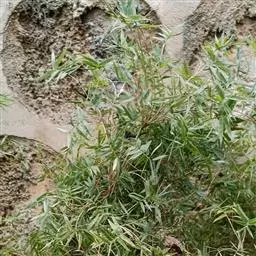 凤尾竹 Raeusch. ex Schult. ’Fernleaf’ R. A. Young)是禾本科,簕竹属孝顺竹的变种。植株较高大,杆高可达6米,竿中空,小枝稍下弯,下部挺直,绿色;竿壁稍薄;节处稍隆起,无毛;叶鞘无毛,纵肋稍隆起,背部具脊;叶耳肾形,边缘具波曲状细长繸毛;叶舌圆拱形,叶片线形,上表面无毛,下表面粉绿而密被短柔毛,小穗含小花,中间小花为两性;外稃两侧稍不对称,长圆状披针形,先端急尖;内稃线形,脊上被短纤毛,花药紫色,子房卵球形,羽毛状。成熟颖果未见。原产中国,华东、华南、西南以至台湾、香港均有栽培。凤尾竹喜温暖、湿润和阳光充足的环境,耐寒。宜土层深厚、肥沃、疏松的微酸性壤土。该种观赏价值较高,宜作庭院丛栽,也可作盆景植物。全草或根入药,味淡、微苦,性寒,有清热利湿、凉血止血、消肿解毒功效,可治痢疾、泄泻等多种病症。凤尾