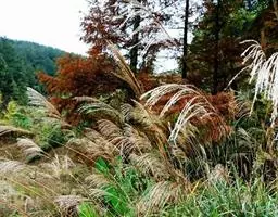 斑叶芒是禾本科、芒属多年生草本植物。丛生状,茎高可达1.7米。叶片有黄色不规则斑纹,…