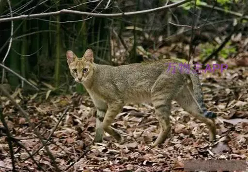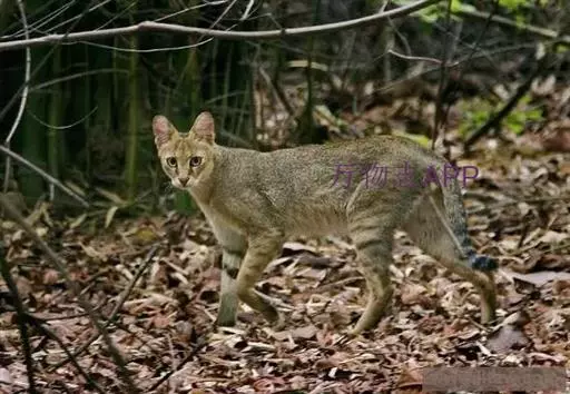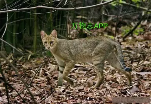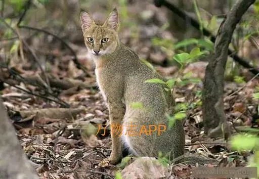 丛林猫(学名:Felis chaus)与其他野猫相比,四肢在比例上显得较长而尾短。体背棕灰或沙黄色;耳背面呈粉红棕色,耳尖褐色;体腹面为淡沙黄色;尾端棕黑色。全身毛色几乎一致且缺乏明显斑纹,为该种体色的显著特点。
