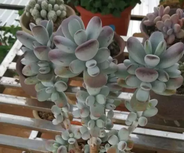 • 白霜,景天科景天属小型多肉植物,叶子绿色肉质会有白霜覆在表面。