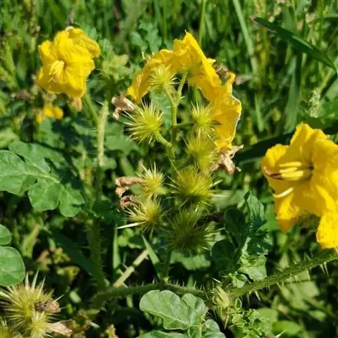 乳茄,茄科茄属直立草本植物,覆盖短的柔毛和扁平尖刺,小枝覆盖长柔毛和扁平刺,刺为蜡黄色,…