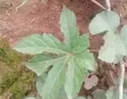 叶大,卵形至长圆状卵形,长8-18厘米或更长,宽5-11厘米或更宽,先端钝,基部不相等,边缘浅波状或深波状圆裂,上面被3-7-(8)分枝短而平贴的星状绒毛,下面密被7-8分枝较长而平贴的星状绒毛,侧脉每边4-5条,在上面疏被星状绒毛,在下面则较密,中脉的毛被与侧脉的相同(野生种的中脉及侧脉在两面均具小皮刺),叶柄长约2-4.5厘米(野生的具皮刺)。