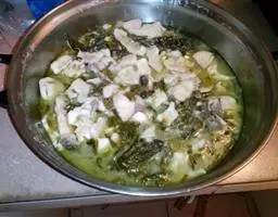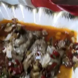 5. 将剁碎的葱姜蒜放在鱼身上,并加入辣椒酱、酒、鱼露和柠檬汁,大火蒸8分钟;