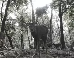 水鹿是偶蹄目鹿科鹿属哺乳动物,又称黑鹿、春鹿、山牛。身体高大粗壮。头骨细长,鼻骨、额骨发达,…