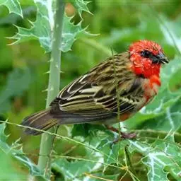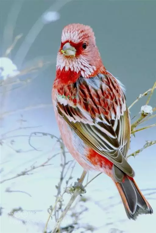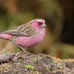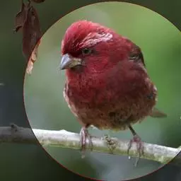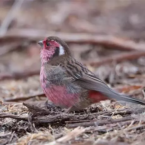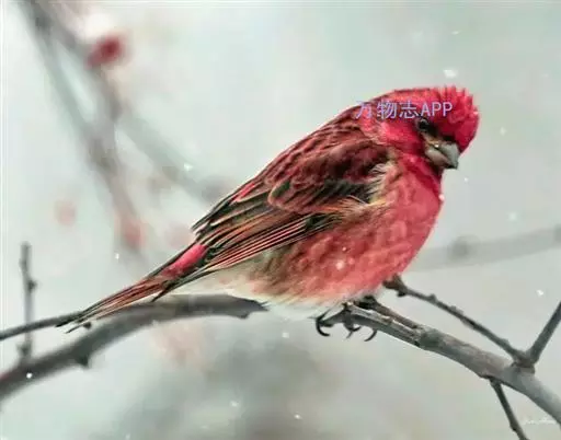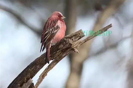 藏朱雀:全长约17-18厘米。雄鸟头部深红色具光辉,喉部暗红色具白色点斑;背部灰白色,各羽具玫瑰红…