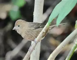 红眉朱雀:体长15厘米,是一种中等体型的朱雀。上体褐色斑驳,眉纹、脸颊、胸及腰淡紫粉,臀近白。…