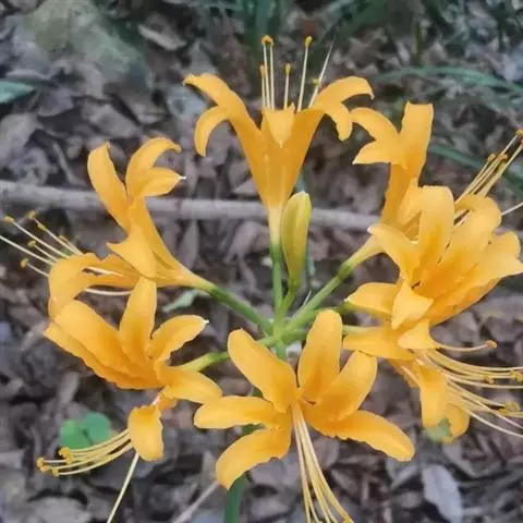 稻草石蒜草本,地生。鳞茎近球形;叶带状;伞形花序,有花5-7朵,花稻草色;花被裂片腹面散生少数粉红…