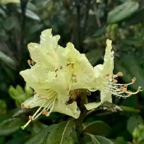 露珠杜鹃:灌木,小乔木,高约2-9米;小枝粗壮,直径约4-5毫米;幼枝有薄层绒毛和腺体,…