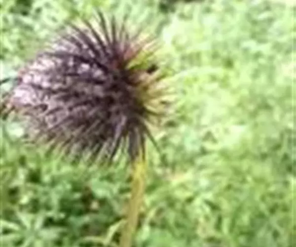 头状花序大,下垂,生枝头顶端或植株仅含1个头状花序而单生茎顶。总苞球形,直径3-6厘米,被稠密而膨松的蛛丝毛或脱毛而至稀毛。总苞片多层多数,通常13-15层,向内层渐长,有时变紫红色,外层与中层披针形,长0.7-2.3厘米,宽3-4毫米;内层绒状披针形,长2.3-2.5厘米,宽1.5-2毫米。全部苞片上部长渐尖,中外层平展或下弯,内层上部外面有稠密短糙毛。小花全部为两性,管状,花冠紫红色,长2.5厘米,细管部长9毫米,檐部长1.4厘米,花冠裂片不等大,三角形,长达3毫米。瘦果长椭圆形,浅褐色,长7毫米,宽约2毫米,顶端截形,有果缘,果缘边缘细锯齿,侧生着生面。冠毛褐色,多层,不等长,向内层渐长,长1.5-2厘米,基部连合成环,整体脱落;冠毛刚毛糙毛状。花果期6-10月。