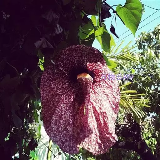 巨花马兜铃学名为“Aristolochia grandiflora”。这种植物的奇特之处在于它们美丽而怪异的花朵。