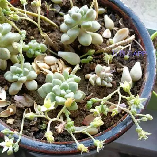 蓝豆是景天科、风车草属的多年生植物,多肉植物。植株叶片覆白粉,呈淡蓝色,…