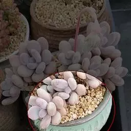 丸叶姬秋丽(Graptopetalum mendozae) 以下为两者的形态区别:丸叶姬秋丽的叶片更圆润偏白;而姬秋丽的叶片则更窄小,且在温差大、光照良好的环境下相比丸叶姬秋丽更偏粉色。丸叶姬秋丽的花瓣是纯白的,而姬秋丽的花瓣上分布着或多或少的细微红点。