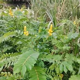 翅荚决明 Roxb.)是豆科决明属灌木植物,高3米。羽状复叶,在叶柄和叶轴上有窄翅;小叶倒卵状长圆形,…