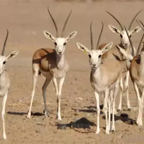 阿拉伯沙瞪羚:是偶蹄目、牛科、瞪羚属的食草动物。头尾长97厘米,身高约55-60厘米。…