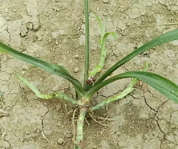 茎粗2-3毫米,蔓延于地面,逐年向前延长或发出新枝,每节上有一残存的叶鞘,顶端的叶簇由于茎的连续生长,有时似长在茎的中部,两叶簇间可相距几厘米至10多厘米。叶每簇有4-8枚,条形至披针形,长10-38厘米,宽0.5-3.5厘米,先端渐尖,向下渐狭成柄,深绿色。