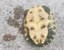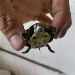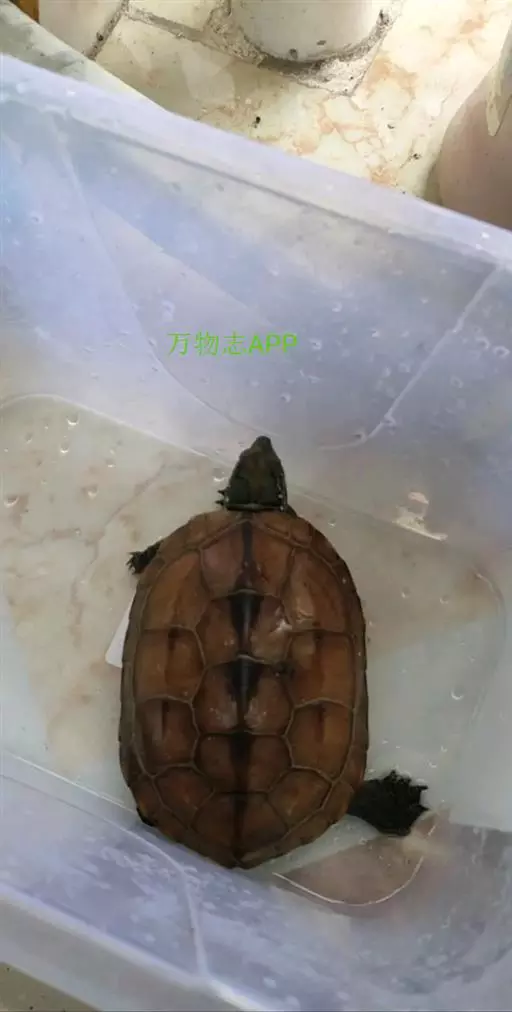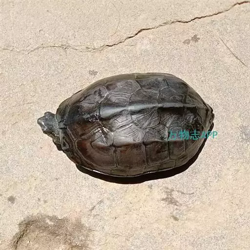 乌龟(学名:Mauremys reevesii)是龟科、拟水龟属爬行动物。头小,不及背甲宽的1/4,头顶前部平滑,后部皮肤具细粒状鳞;吻端向内侧下斜切,喙缘的角质鞘较薄;下颚左右齿骨间的交角小于90°。背甲较平扁,具3条纵棱,四肢略扁平,指、趾间均具蹼,具爪。尾较短小。背甲棕褐色,腹甲及甲桥棕黄色,每一盾片均有黑褐色大斑。头部橄榄色或黑褐色;头侧及咽部有喑色镶边的黄纹及黄斑,并向后延伸至颈部。雄性个体几乎整个呈黑色,有异臭,雌龟背甲棕褐色。