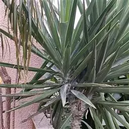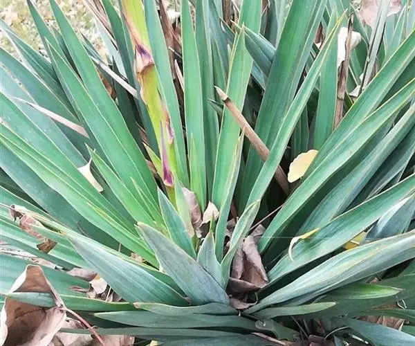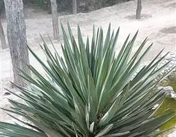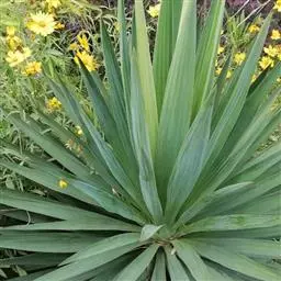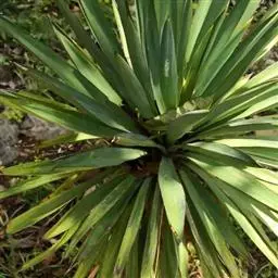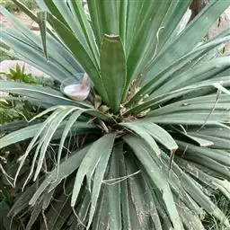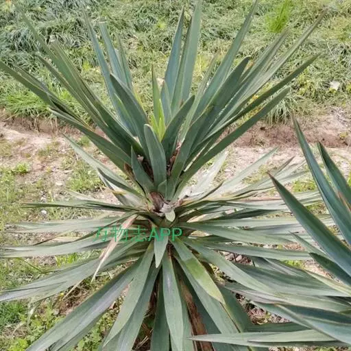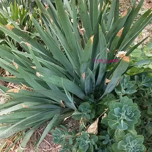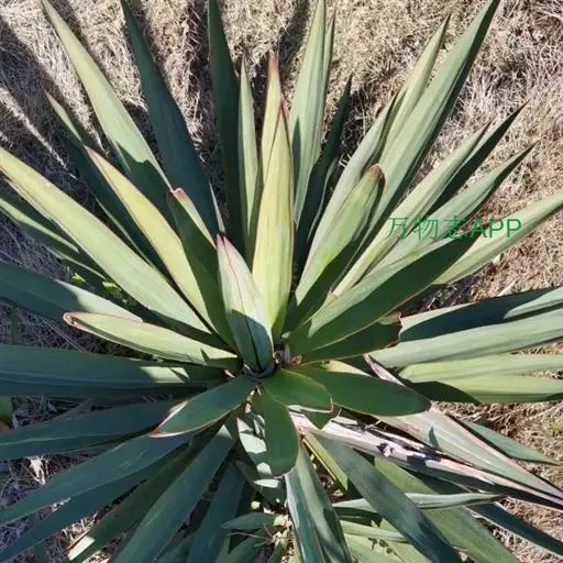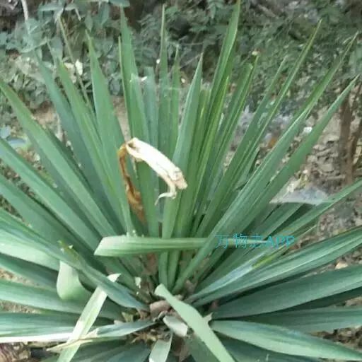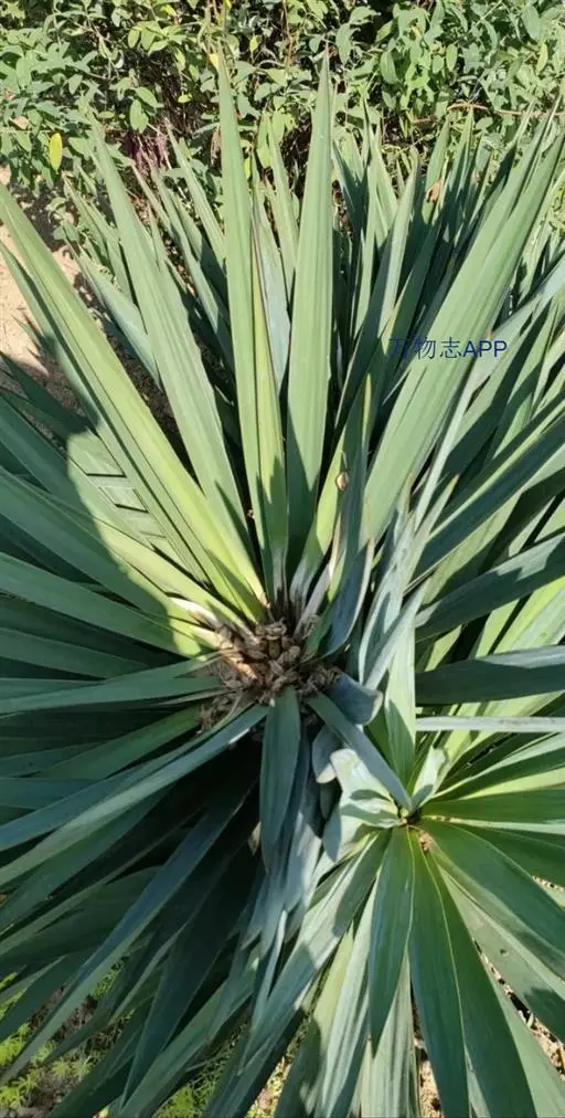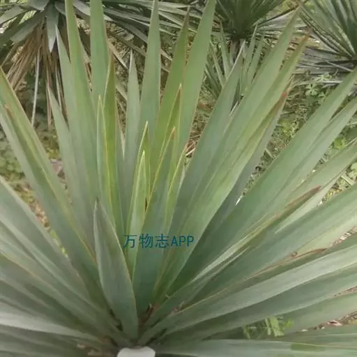丝兰 茎很短或不明显。叶近莲座状簇生,坚硬,近剑形或长条状披针形,长25-60厘米,宽2.5-3厘米,顶端具一硬刺,边缘有许多稍弯曲的丝状纤维。
