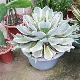 万年麻是万年兰属植物,株高可达1m,茎不明显。叶呈放射状生长,剑形,叶缘有刺,波状弯曲。斑叶品种无…