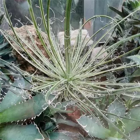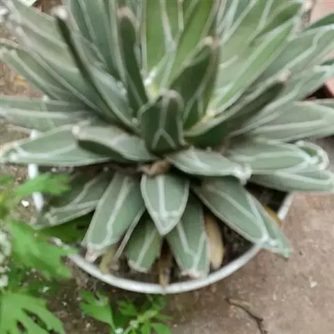 皇后龙舌兰是天门冬科、龙舌兰属多年生草本多浆植物。无主茎,叶丛生,莲座状,株幅40厘米。叶较多,…