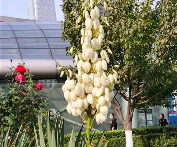 抗性强,适应性广,四季常青,观赏价值高,是园林绿化的重要树种。丝兰叶姿刚劲有力,常年浓绿 丝兰园林 色,夏秋间开花,花期长,花序圆锥形,高出叶丛,显得高大挺拔,一串串乳白色如杯状的花朵,后变微黄,上缀下垂,互相簇拥,亮丽秀美。丝兰数株成丛,高低不一,剑形叶放射状排列整齐,适于庭园、公园、花坛中孤植或丛植,常栽在花坛中心、庭前、路边、岩石、台坡,也可和其它花卉配植。